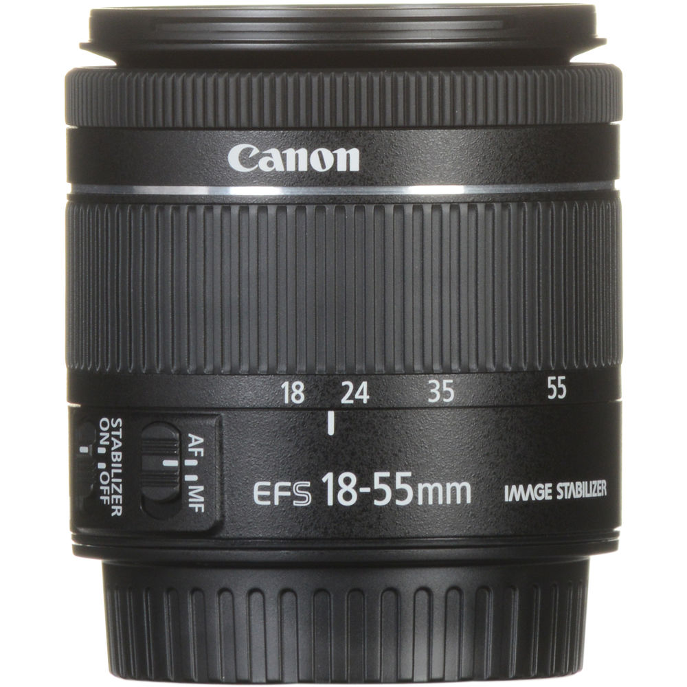 Standard 18-55mm zoom lens is designed for APS-C-format Canon DSLRs and provides a 28.8-88mm equivalent focal length range.
