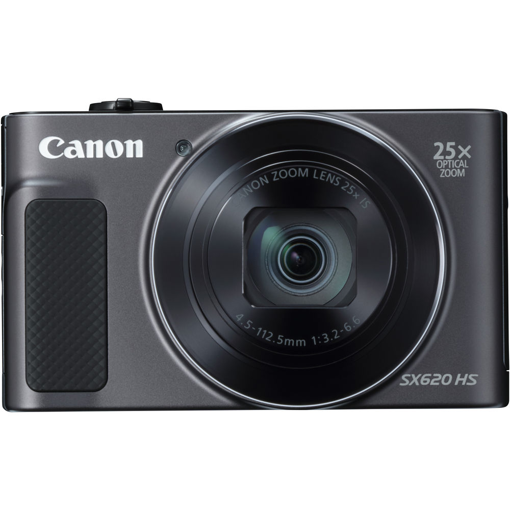 Characterized by its long-reaching zoom, the black PowerShot SX620 HS from Canon is a sleek digital camera featuring a high-resolution 20.2MP CMOS sensor along with a powerful DIGIC 4+ image processor. The sensor and processor combine to form the Canon HS SYSTEM, which produces imagery with notable clarity and quality, as well as reduced noise when working at high sensitivities in low-light conditions. The sensor and processor also permit recording Full HD 1080p video at 30 fps, shooting stills at up to 7.1 fps, and working with sensitivities up to ISO 3200 to suit shooting in difficult lighting conditions. Complementing the imaging capabilities is a 25x optical zoom lens, which covers a wide-angle to super telephoto 25-625mm-equivalent focal length range, and Intelligent IS serves to balance this reach by minimizing the appearance of camera shake for sharper handheld shooting. The sleek form factor of the camera is accented by a large 3.0" 922k-dot LCD screen for composing imagery and reviewing your shots, and built-in Wi-Fi with NFC enables wireless sharing and remote camera control from a linked smartphone or tablet.