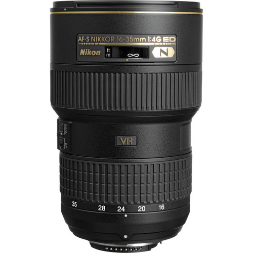 Covering a versatile array of wide-angle focal lengths, the AF-S NIKKOR 16-35mm f/4G ED VR from Nikon is a flexible zoom ideal for landscape, cityscape, and interior photography. Its constant f/4 maximum aperture maintains consistent illumination throughout the zoom range and suits working in a variety of lighting conditions. The optical design contains three aspherical elements and two extra-low dispersion elements, which greatly reduce distortion and aberrations for a high degree of sharpness, clarity, and accurate rendering. A Nano Crystal Coat has also been applied to control flare and ghosting for greater contrast and color accuracy in harsh lighting and backlit conditions. Additionally, this lens also sports a Silent Wave Motor for fast and accurate autofocus along with VR II image stabilization to minimize the appearance of camera shake by 2.5 stops.