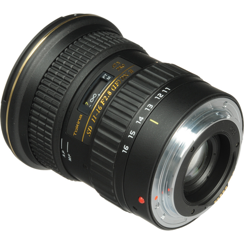 The AT-X 116 PRO DX-II 11-16mm f/2.8 Lens for Canon EF by Tokina is an ultra-wide angle autofocus zoom lens with a fast constant f/2.8 maximum aperture. The AT-X 116 PRO DX-II lens is designed for digital cameras with APS-C-size CMOS or CCD sensors. Its angle of view ranges from 104-84° and it can focus as close as 11.8". Nine diaphragm blades help to produce soft out-of-focus backgrounds while two Super-Low Dispersion glass elements and two aspheric elements help to achieve excellent contrast, sharpness and minimal chromatic aberration. As an update to their AT-X 116 PRO DX, Tokina has improved the multi-layer coatings to minimize light reflection and improve optical performance. The PRO DX-II has an internal focusing motor which is ideal if shooting video with your digital camera.